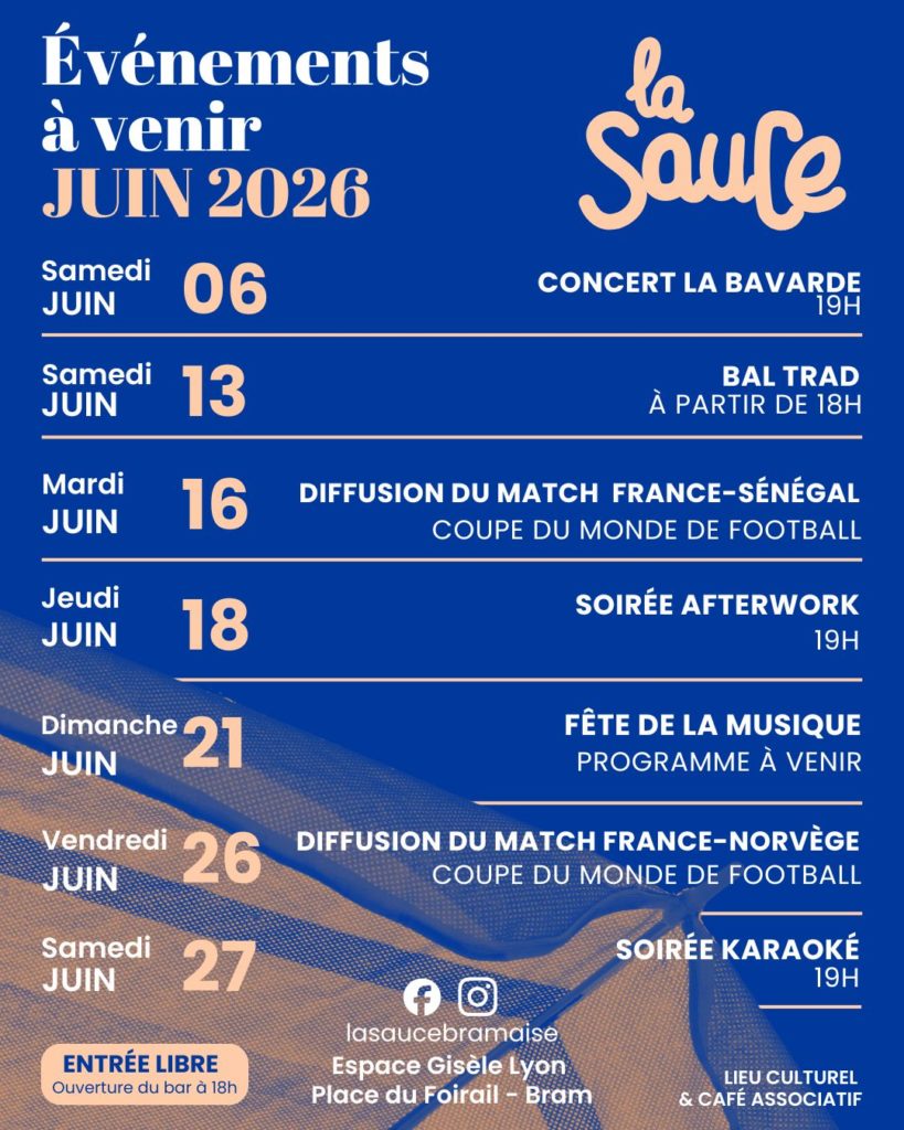 La Sauce est un tiers-lieu situé à proximité du centre de Bram, il accueille un « café-bar associatif culturel et convivial » en même temps qu’un « espace de travail partagé ». Venez construire ce projet avec nous !
